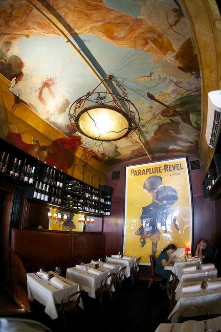 Located on the “Paris End” of Collins Street, Bistrot d’Orsay’s interior evokes the French capital with its trompe l’oeil ceiling, a towering vintage French poster, dark wood paneling, and soft lighting. With a spectacular view of the ornate Regent Theatre directly opposite, Bistrot d’Orsay boasts one of Melbourne’s best restaurant views.